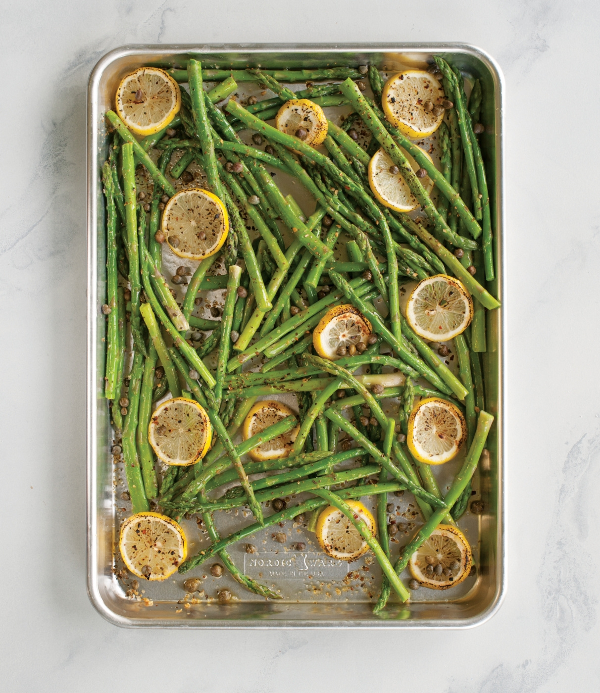 Nordic Ware Naturals Jelly Roll Pan to solidna i niezawodna blacha do pieczenia, odpowiednia do wielu rodzajów wypieków i technik kulinarnych. Jej duża powierzchnia sprawia, że doskonale nadaje się do klasycznych rolad biszkoptowych, ciast pieczonych na blasze, ciasteczek oraz ciast o konsystencji zbliżonej do chleba, ale równie dobrze sprawdza się do pieczenia warzyw, nachos, małych pizz porcjowanych czy jako uniwersalna blacha w intensywnie pracującej kuchni. Blacha produkowana jest w USA z ciężkiego odlewanego aluminium, które zapewnia równomierne rozprowadzanie ciepła i pomaga uzyskać powtarzalne rezultaty przy każdym użyciu. Naturalna powierzchnia ułatwia czyszczenie i jest mniej podatna na reakcje z produktami mogącymi przebarwiać lub przywierać, co czyni ją świetnym wyborem zarówno dla profesjonalnych cukierników, jak i domowych piekarzy.