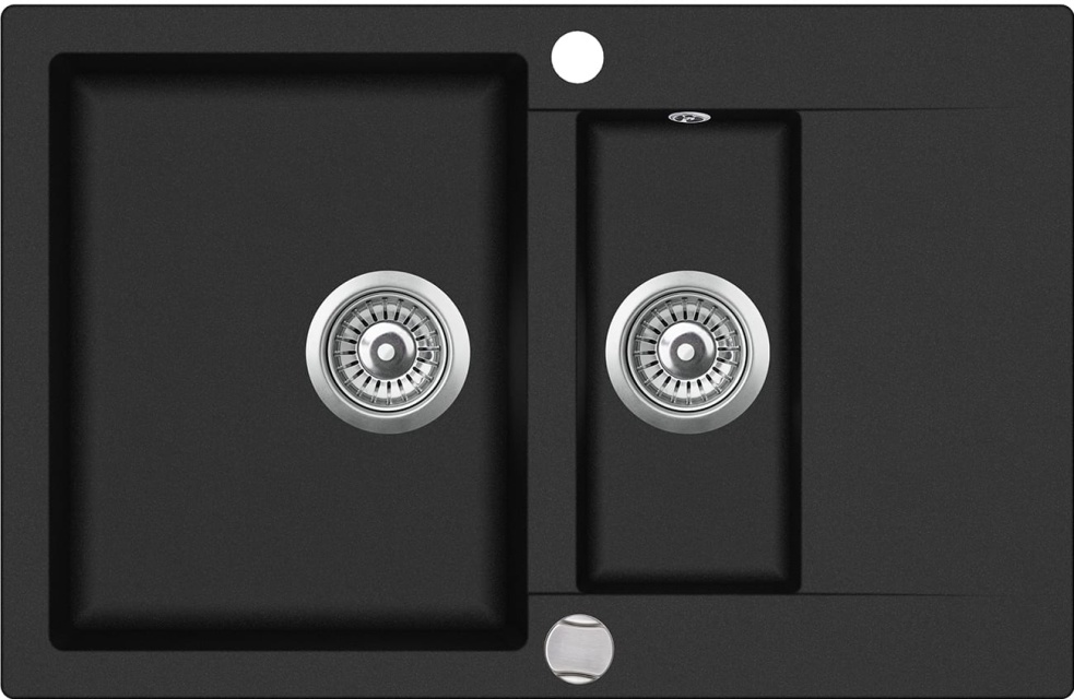 Diskho Cuba double 800 x 495 mm z miejscem do przechowywania ze sztucznego granitu, nowego materiału, który wygląda jak prawdziwy granit, ale ma jeszcze lepsze właściwości! Jest to bardzo trwały i kompozytowy materiał z wypełnieniem z naturalnych minerałów i żywicy.