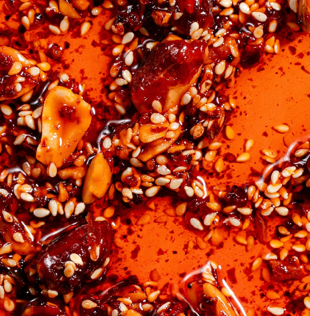 Extra Hot Peanut Rãyu, chrupiący olej chili z orzeszkami ziemnymi i sezamem, 240 g - White Mausu