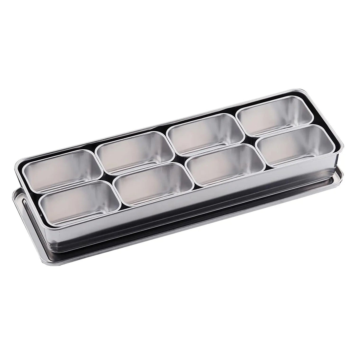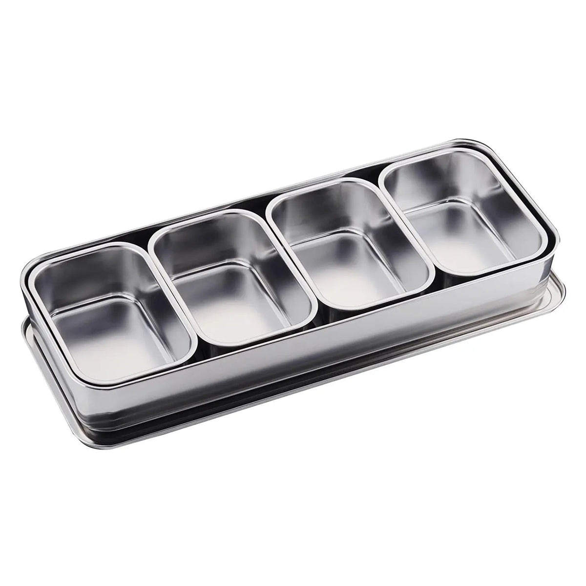 Tace wykonane są ze stali nierdzewnej 18-8 i odznaczają się absurdalnie wysoką jakością. Można je myć w zmywarce, lecz producent nie zaleca używania w piekarniku ani mikrofalówce. To doskonały sposób na utrzymanie idealnego porządku na stanowisku, a także świetny sposób na serwowanie różnych przekąsek, jak warzywa z dipem, dodatki do taco czy mój dziecięcy hit „Bombay Curry” z ryżem, mięsem mielonym i dodatkami takimi jak kokos, mango czy rodzynki.