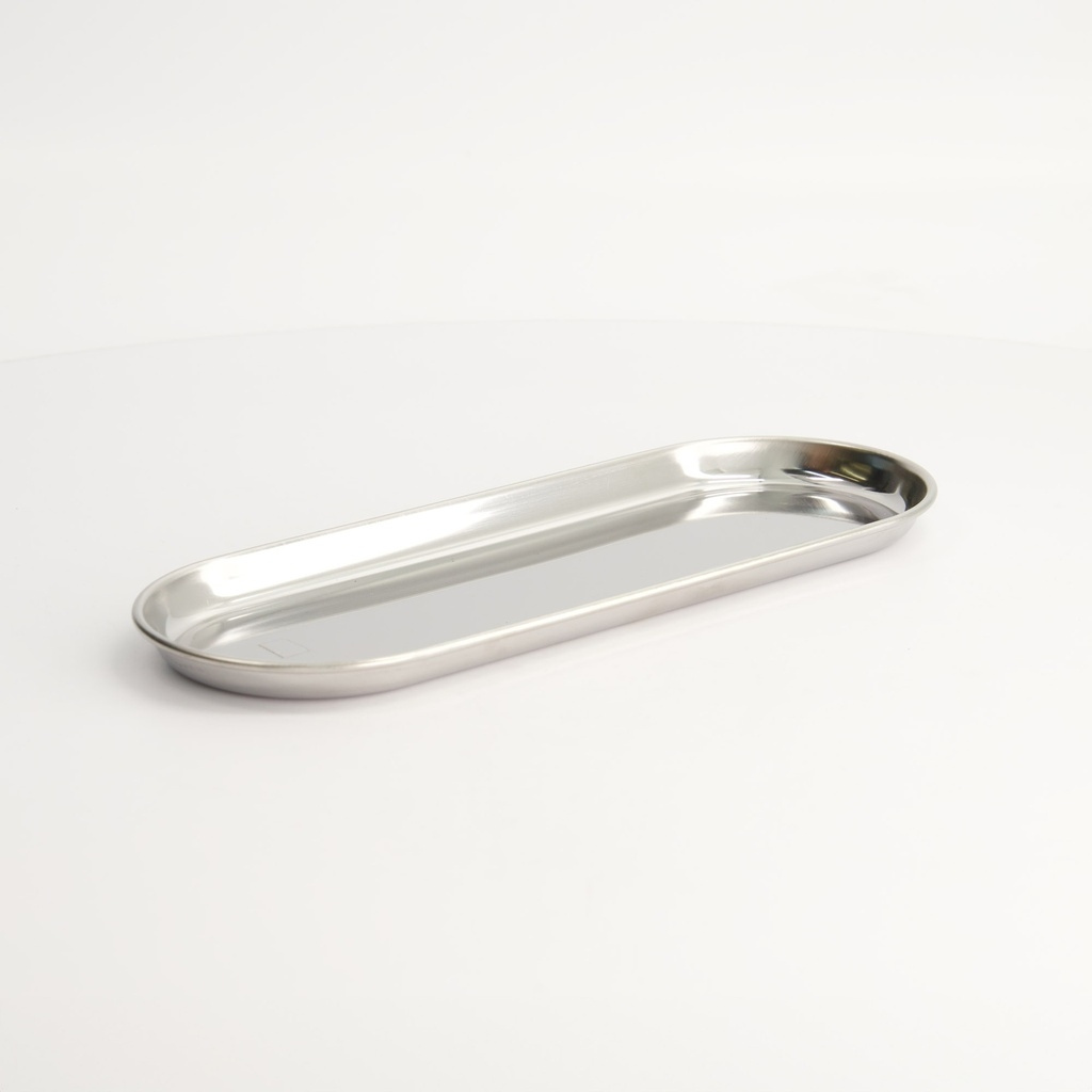 Materiał jest mocny, całkowicie bezszwowy i może wytrzymać zarówno ciepło, jak i zimno. Lustrzane wykończenie ułatwia utrzymanie go w czystości i pozwala zobaczyć, co gdzie się znajduje, nawet podczas szybkiej pracy. Działa równie dobrze jako naczynie do serwowania mniejszych potraw, dodatków lub sosów, które mają być podawane w tym samym czasie - lub jako neutralna powierzchnia, gdy coś musi po prostu odpocząć przez chwilę, zanim wyląduje na talerzu.