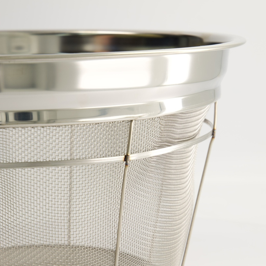 Profesjonalny japoński durszlak zaru ze stali nierdzewnej o głębokim, stożkowatym kształcie, który sprawia, że doskonale nadaje się do płukania, odcedzania i szybkiego schładzania makaronu, ryżu czy warzyw. Solidna konstrukcja z ciasno spawaną siatką zapewnia szybkie odsączanie i wysoką trwałość nawet przy intensywnym użytkowaniu.