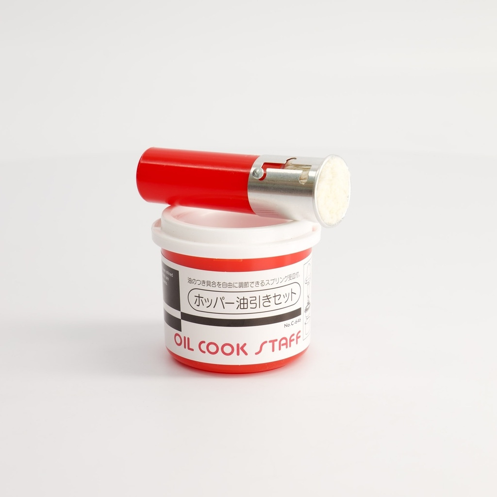 Jest używany w profesjonalnych kuchniach do olejowania woków, grilli i patelni teppanyaki. Szczotka wykonana jest z odpornego na ciepło bawełnianego materiału, który wchłania odpowiednią ilość oleju i uwalnia go równomiernie w kontakcie z gorącą powierzchnią. Czerwony uchwyt chroni dłoń przed gorącem i ułatwia wymianę włosia, gdy się zużyje.