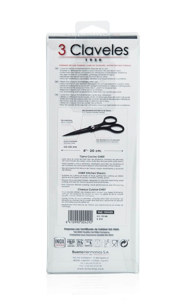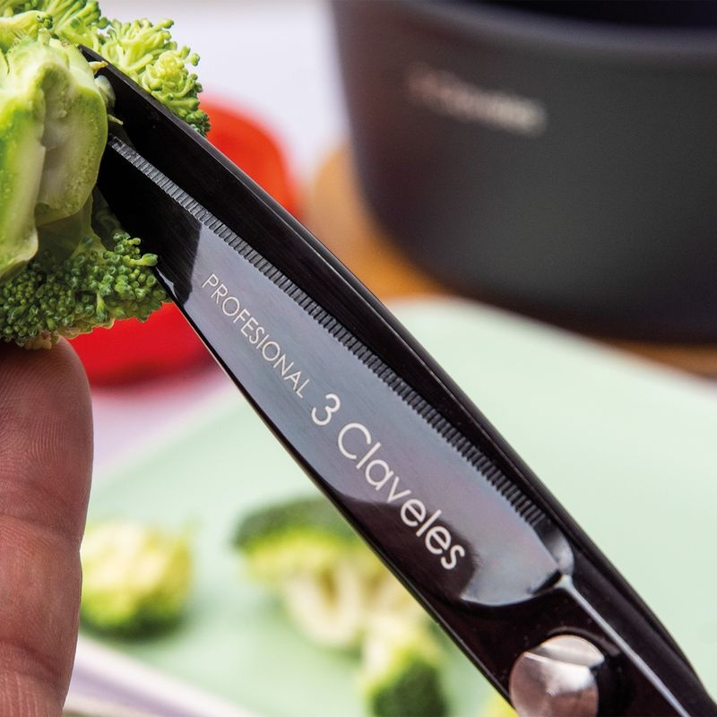 Te nożyczki kuchenne 3 Claveles to nie tylko narzędzie, to przedłużenie Twojej dłoni, gdy chodzi o precyzyjną i powtarzalną pracę w profesjonalnej kuchni. Wykonane ze stali nierdzewnej w konstrukcji kutej na gorąco, są stabilne i odporne na skręcanie, zachowując kształt i ostrość nawet przy intensywnym użytkowaniu. Każde otwarcie i zamknięcie jest bezpośrednie i kontrolowane, dzięki czemu pracujesz z surowcem, a nie przeciwko niemu.