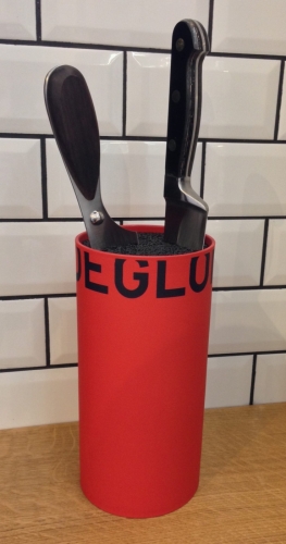"Mały i poręczny stojak na noże francuskiej marki Déglon. Chociaż stojak jest niewielkich rozmiarów, może pomieścić wiele noży, dzięki temu, że zamiast stałych przegródek, jak wiele innych stojaków na noże) ma wnętrze z plastikowych słomek, które pozwalają na umieszczenie noży w stojaku na noże tak, jak chcesz.