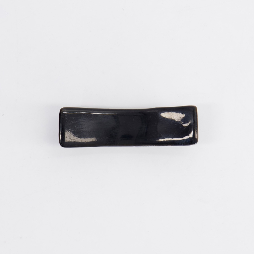 Ten model jest wykonany z ceramiki z głębokim czarnym szkliwem, które ma tendencję do brązowienia w kierunku krawędzi. Kształt jest klasyczny, lekko zakrzywiony jak łódka lub półksiężyc, co pozwala pałeczkom leżeć stabilnie bez staczania się. Kolor sprawdza się zarówno jako kontrast dla jasnej zastawy stołowej, jak i naturalny element ciemniejszego, bardziej stonowanego nakrycia stołu.