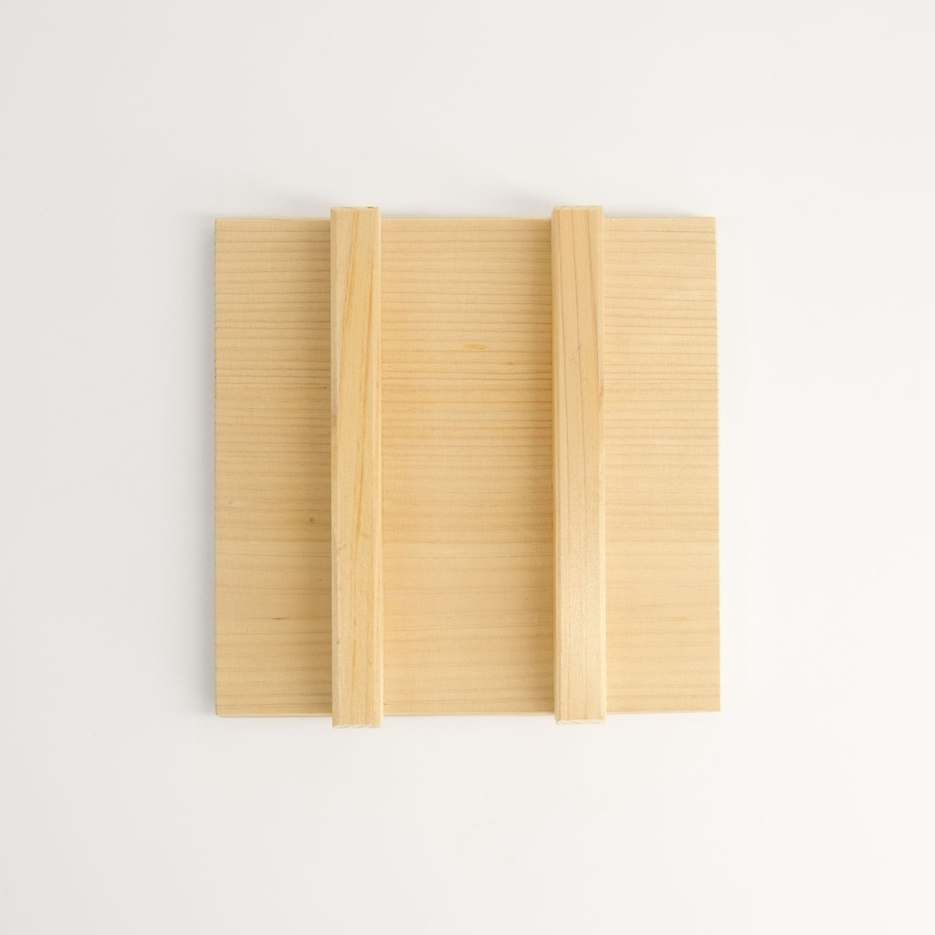 Konstrukcja pokrywy jest prosta, ale przemyślana: płaski drewniany dysk z dwoma poprzecznymi uchwytami, które ułatwiają chwytanie i umieszczanie jedną ręką. Drewno nie przewodzi ciepła jak metal, pozwalając na szybką pracę bez poparzenia, a jego powierzchnia pochłania część wilgoci z jajka, przyczyniając się do bardziej suchej, elastycznej powierzchni, która charakteryzuje dobre tamagoyaki.