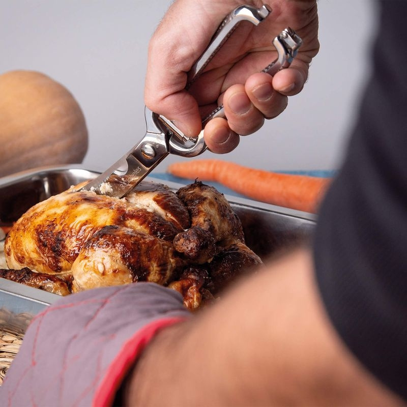 Uchwyt został zaprojektowany tak, aby pozostawał stabilny nawet podczas dłuższej pracy, a blokada bezpieczeństwa jest zintegrowana bez zakłócania rytmu pracy. W kuchni, w której rozbiera się całe kurczaki, kaczki czy mniejsze ptactwo łowne, szybko stają się podstawowym narzędziem. To nożyce, które sprawiają, że inne wydają się cienkie. Gdy raz popracujesz z konstrukcją kutą na gorąco na tym poziomie, trudno wrócić do czegoś innego.
