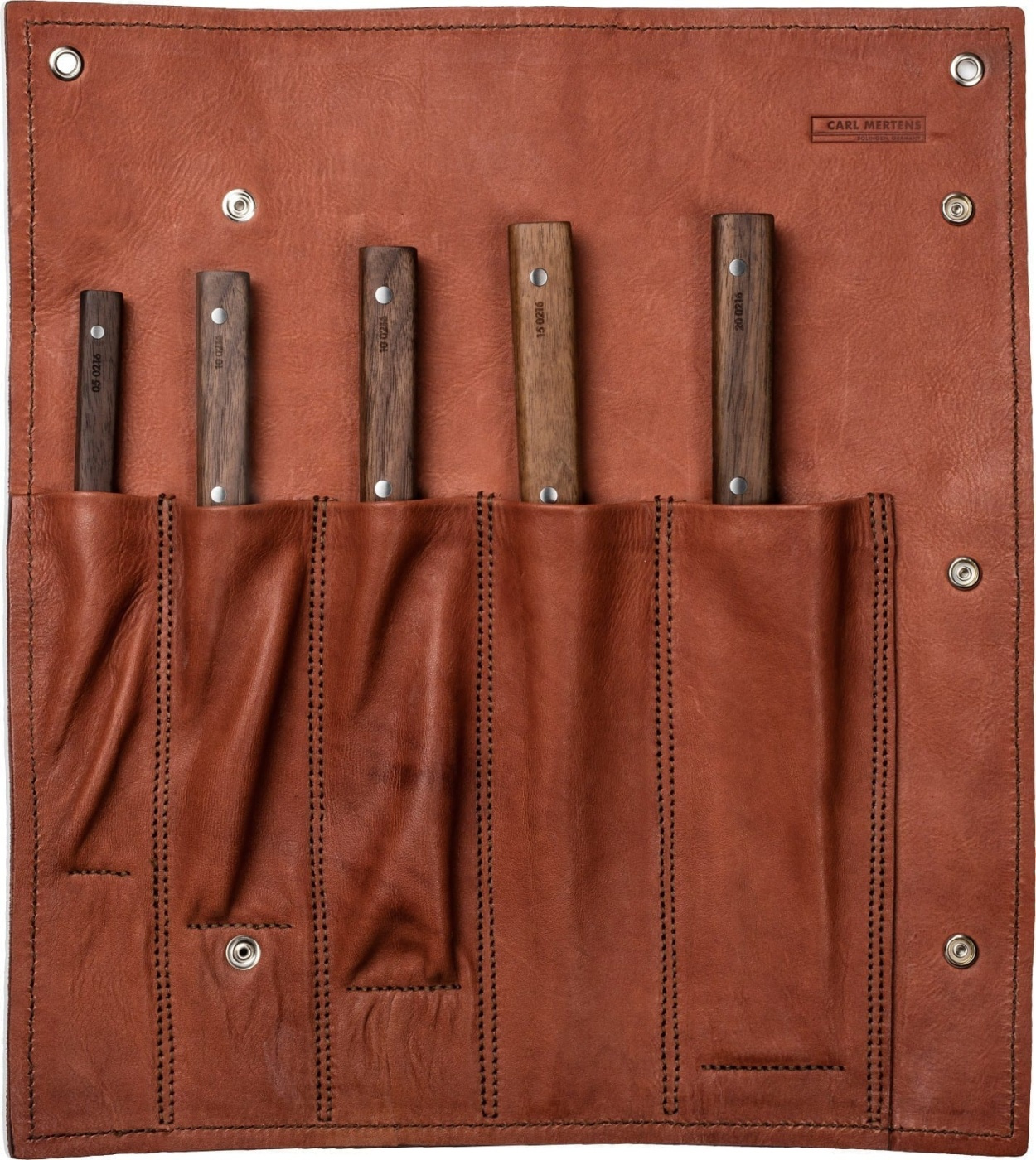 Ręcznie wykonane etui z szorstkiej skóry na noże i inne niezbędne przedmioty. Etui można zwinąć, dzięki czemu idealnie nadaje się do podróży. Solidna jakość obiecuje wiele lat użytkowania, a patyna tylko czyni go piękniejszym.