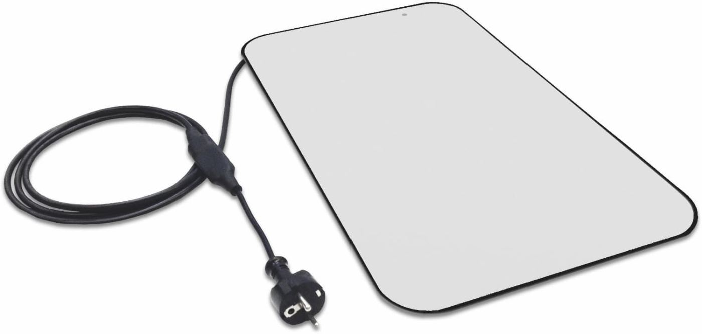 Odporna na temperaturę do 120°C i chroniona przed rozpryskami. Wymiary: 480×280×10 mm, waga 1,2 kg. Zasilanie 230 V.