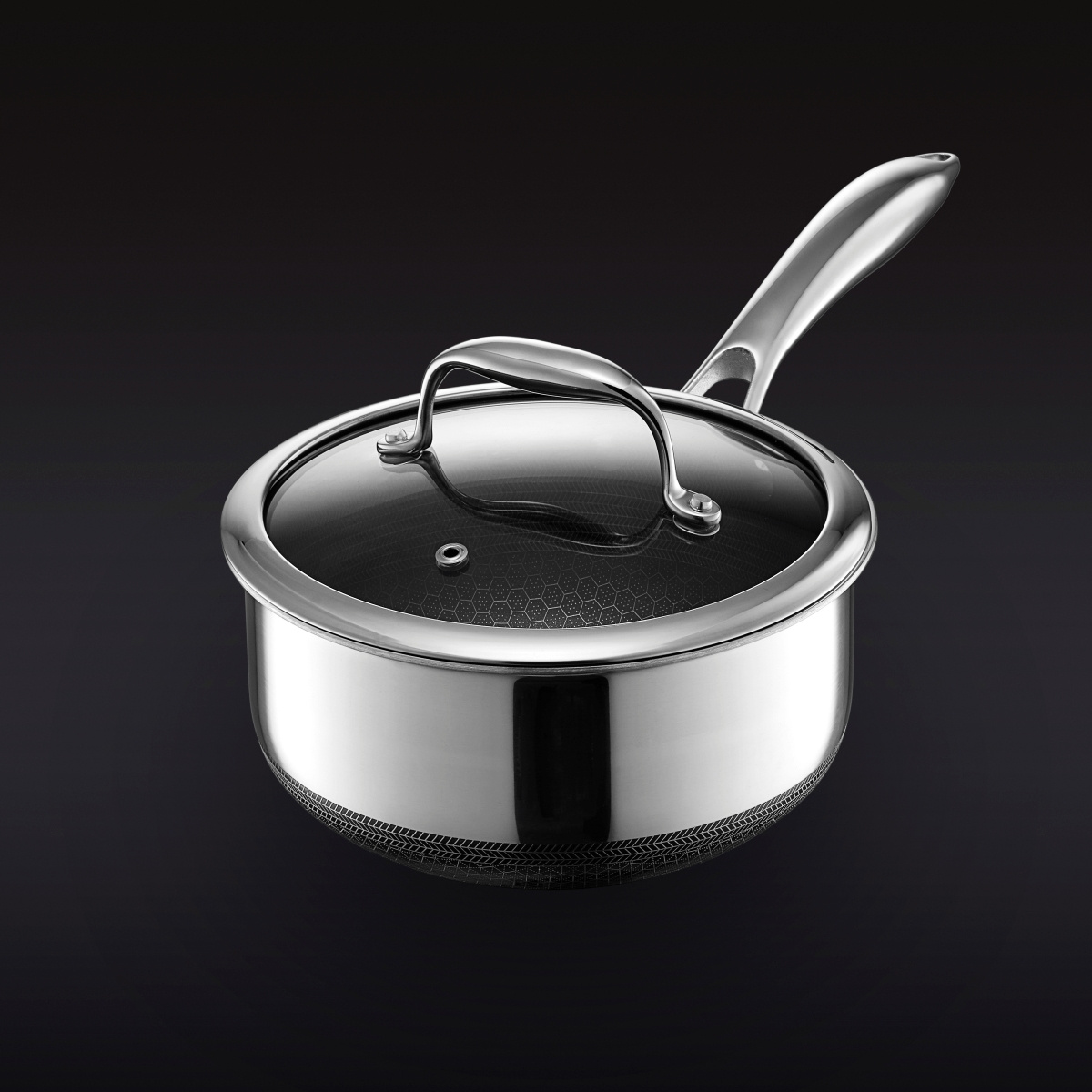 Garnek Hexclad ze szklaną pokrywką to wierny towarzysz pracy w kuchni - równie dobrze sprawdzi się w codziennej kuchni, jak i w kuchni konesera. Łączy w sobie elastyczność, trwałość i łatwość użytkowania, gotowy na wszystko, co chcesz ugotować.
