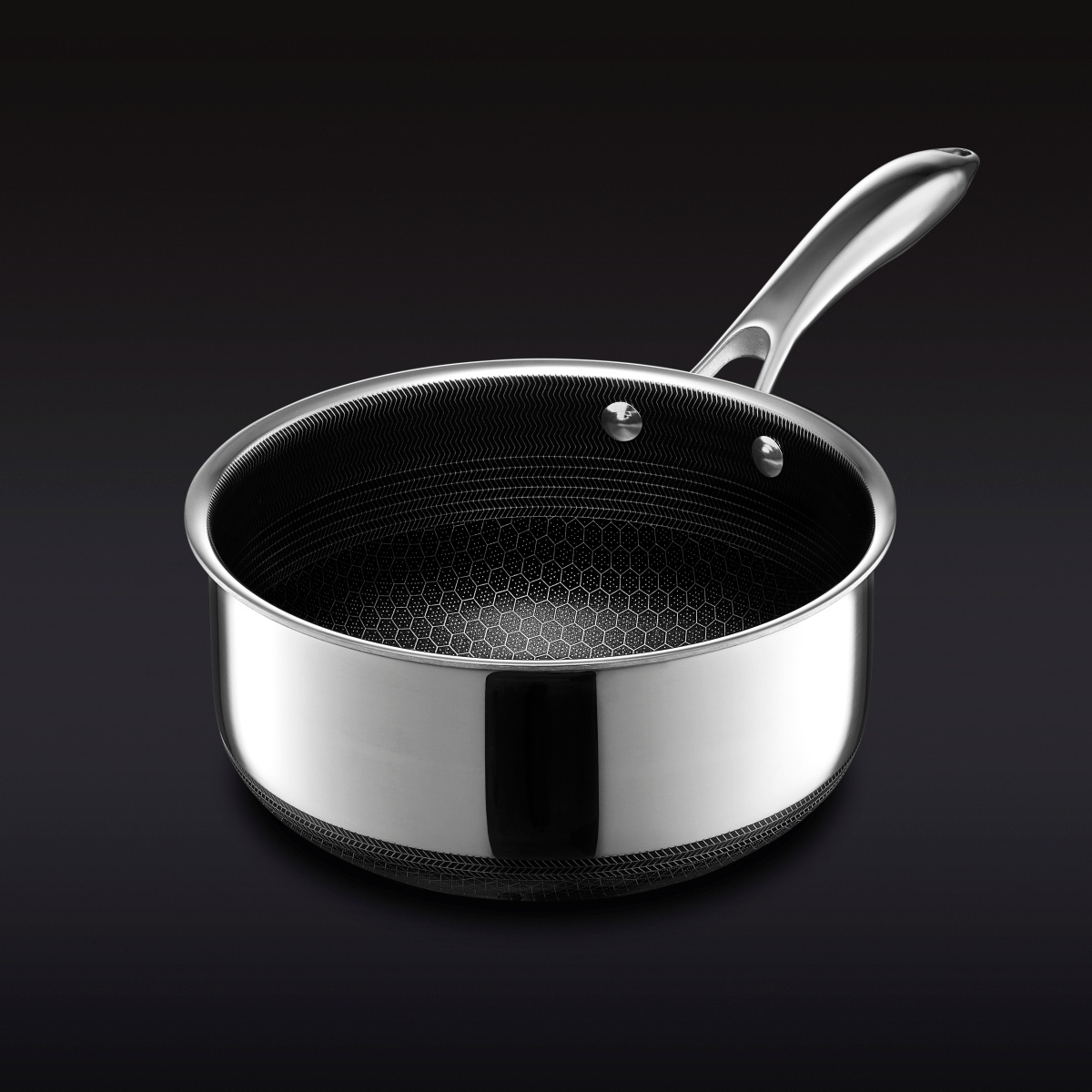 Garnek Hexclad to wszechstronne naczynie kuchenne, które łączy w sobie wytrzymałość stali nierdzewnej, równomierne rozprowadzanie ciepła aluminiowego rdzenia i trwałą, nieprzywierającą powierzchnię - wszystko w jednym hybrydowym garnku. Zaprojektowano go tak, aby z precyzją i kontrolą radził sobie ze wszystkim, od obfitych gulaszów i zup po wodę na makaron, ryż i powolne gotowanie.