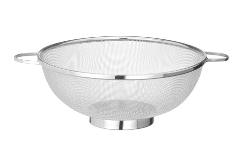 Cedzak ze stali nierdzewnej z drobną siatką, który wyłapuje nawet małe składniki takie jak quinoa, soczewica i podobne. Dwa uchwyty i stabilne dno pozwalają na swobodne stanie lub trzymanie nad naczyniem. Nadaje się do mycia w zmywarce.