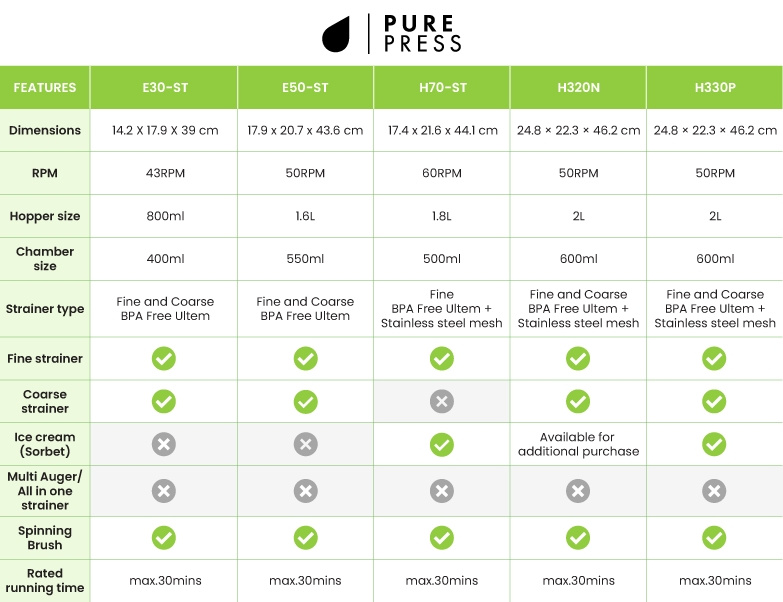Hurom Special Edition H330P Series to wysokiej klasy slow juicer zaprojektowany z myślą o połączeniu efektywnej ekstrakcji soku z trwałością i wygodą użytkowania. Należy do linii Pure Press Line marki Hurom, serii slow juicerów wykorzystujących drobnoziarnistą technologię sit, aby poprzez tłoczenie na zimno uzyskać klarowny, bogaty w składniki odżywcze sok o niskiej zawartości pulpy, zachowujący więcej witamin i minerałów niż szybkie wirowanie.