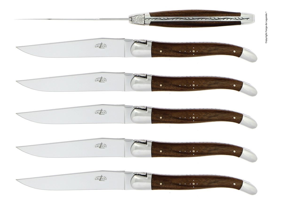 Sześć noży, rękojeść z orzecha włoskiego, polerowana, Tradition - Forge de Laguiole