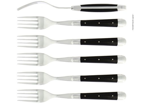 Sześć widelców, hebanowe uchwyty, polerowane, Tradition - Forge de Laguiole