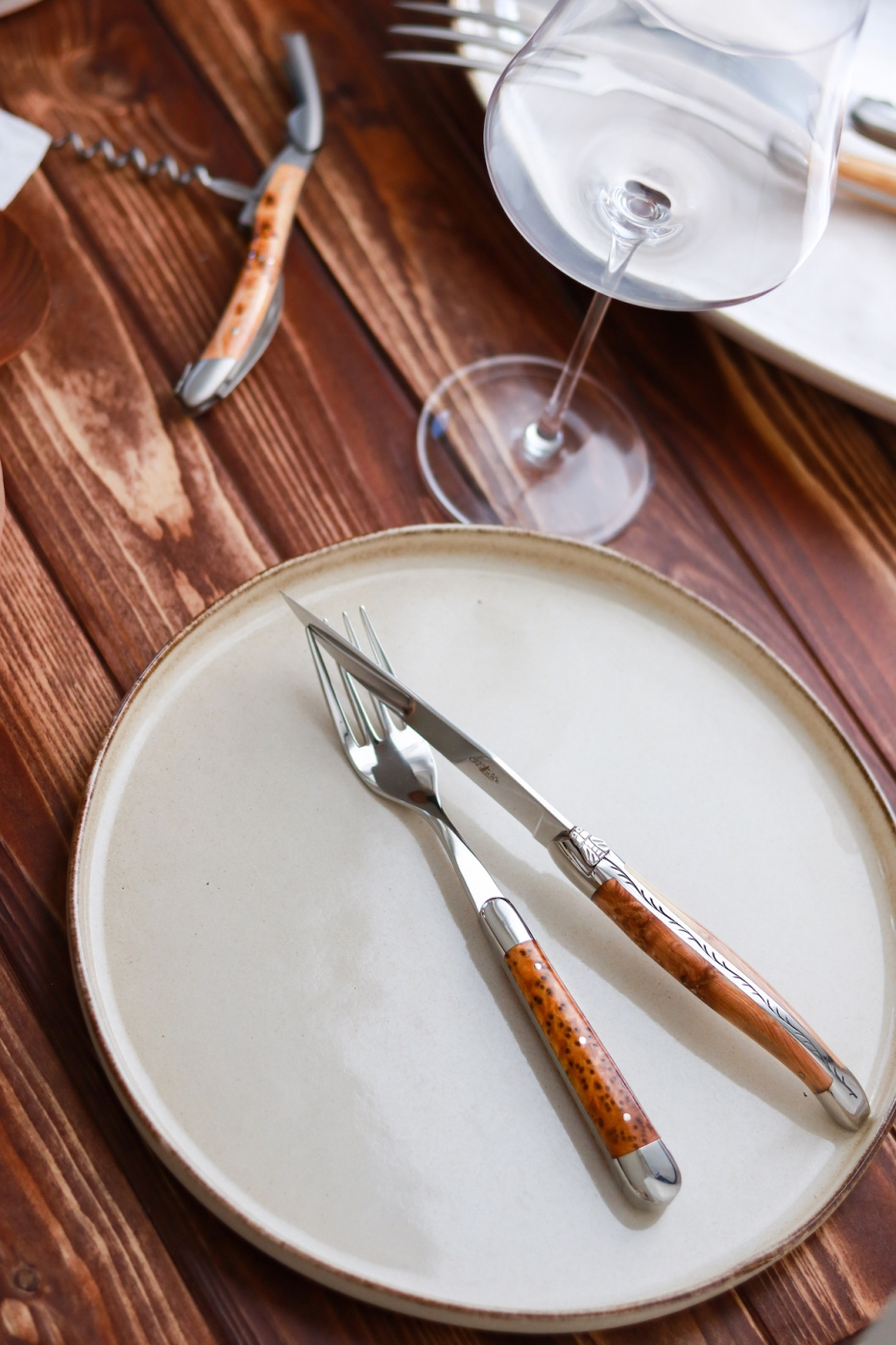 Wioska Laguiole na południu Francji ma długą i dumną tradycję wytwarzania noży. Od połowy XIX wieku kultowy design noży do żywności i noży składanych jest synonimem nazwy Laguiole. Chociaż wioska liczy nieco ponad 1000 mieszkańców, do dziś pozostało w niej kilku wytwórców noży, a tradycja jest wciąż żywa. Ponieważ nazwa nie jest zastrzeżona i jest synonimem jakości i tradycji, była kopiowana przez wielu i jest kopiowana do dziś. Wiele sztućców z odmianami nazwy Laguiole jest w rzeczywistości produkowanych w zupełnie innych miejscach na świecie, podczas gdy nasz asortyment z Forge de Laguiole jest nadal wytwarzany ręcznie w tej samej wiosce, co zawsze.