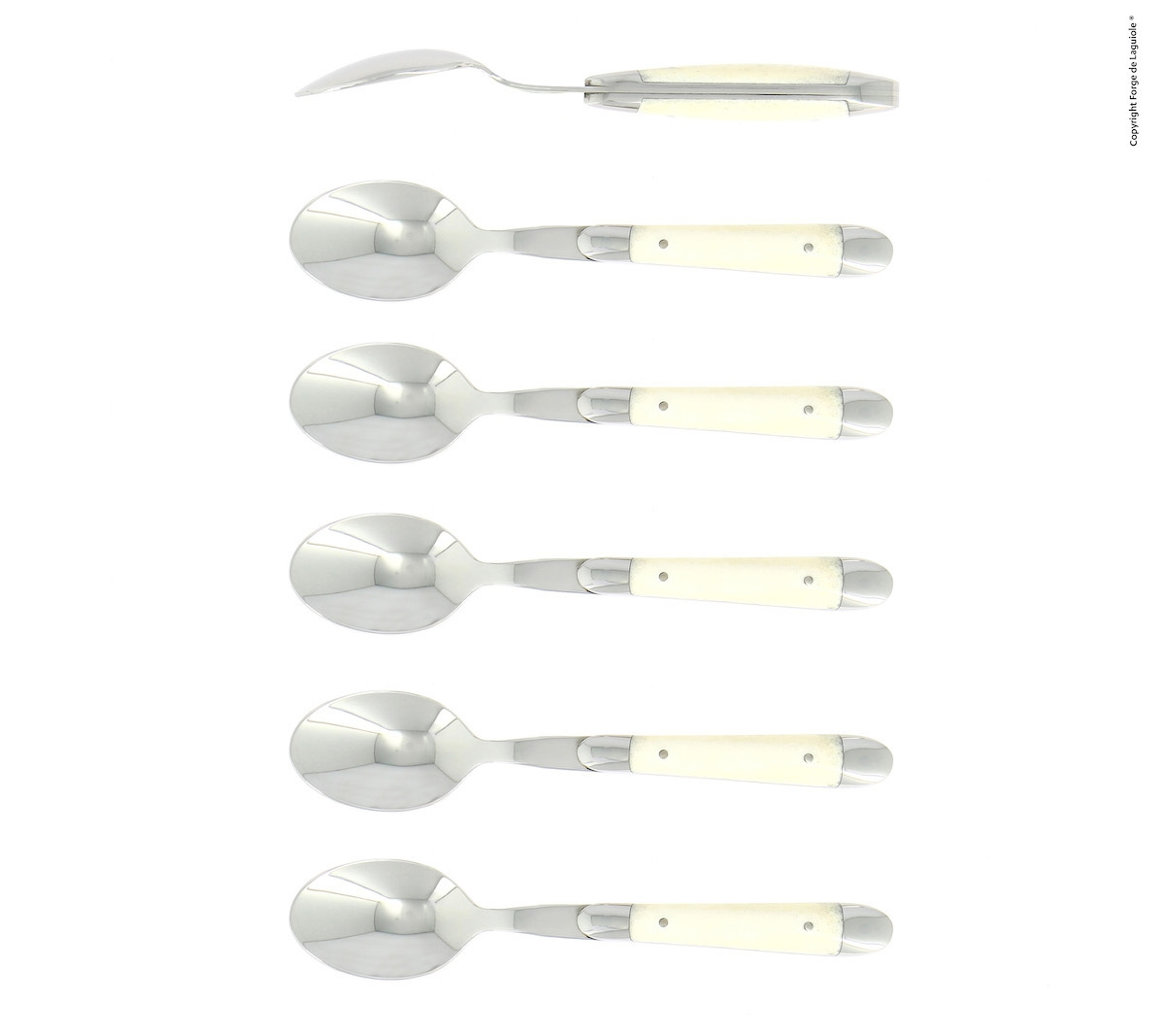 Sześć łyżeczek deserowych, uchwyt z kości, polerowane, Tradition - Forge de Laguiole