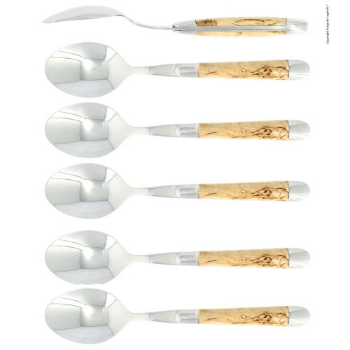 Sześć łyżek, uchwyt brzozowy, polerowany, Tradition - Forge de Laguiole