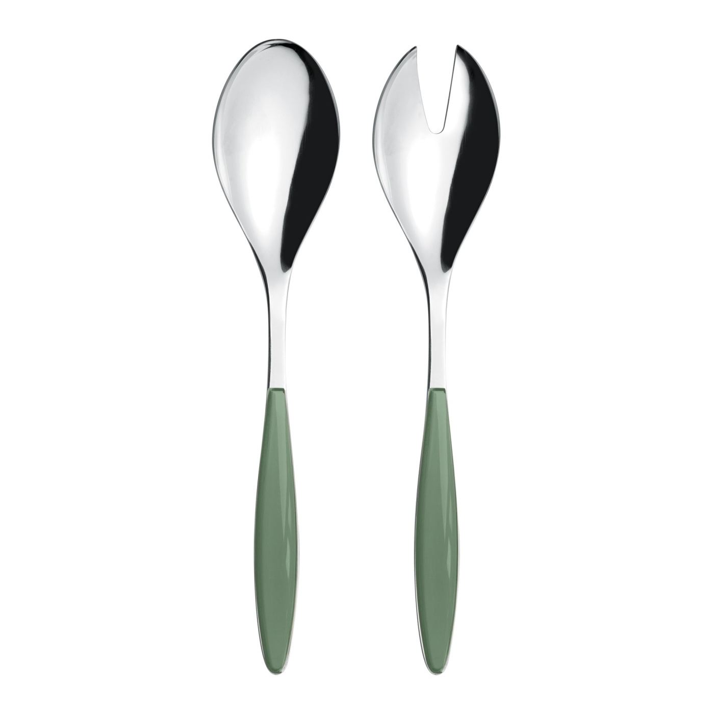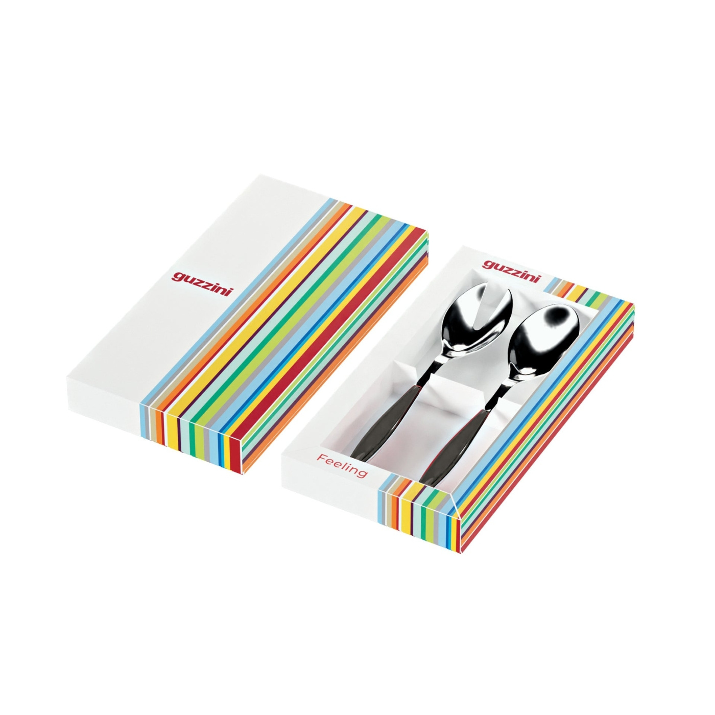 Sztućce do sałaty z serii Feeling od Guzzini. Para przyborów do serwowania która łączy klasyczną stal nierdzewną z kolorowymi uchwytami z plastiku, wprowadzając na stół zarówno stabilność jak i odrobinę włoskiej lekkości. Tihi jak powiedziałaby księżniczka Madeleine.