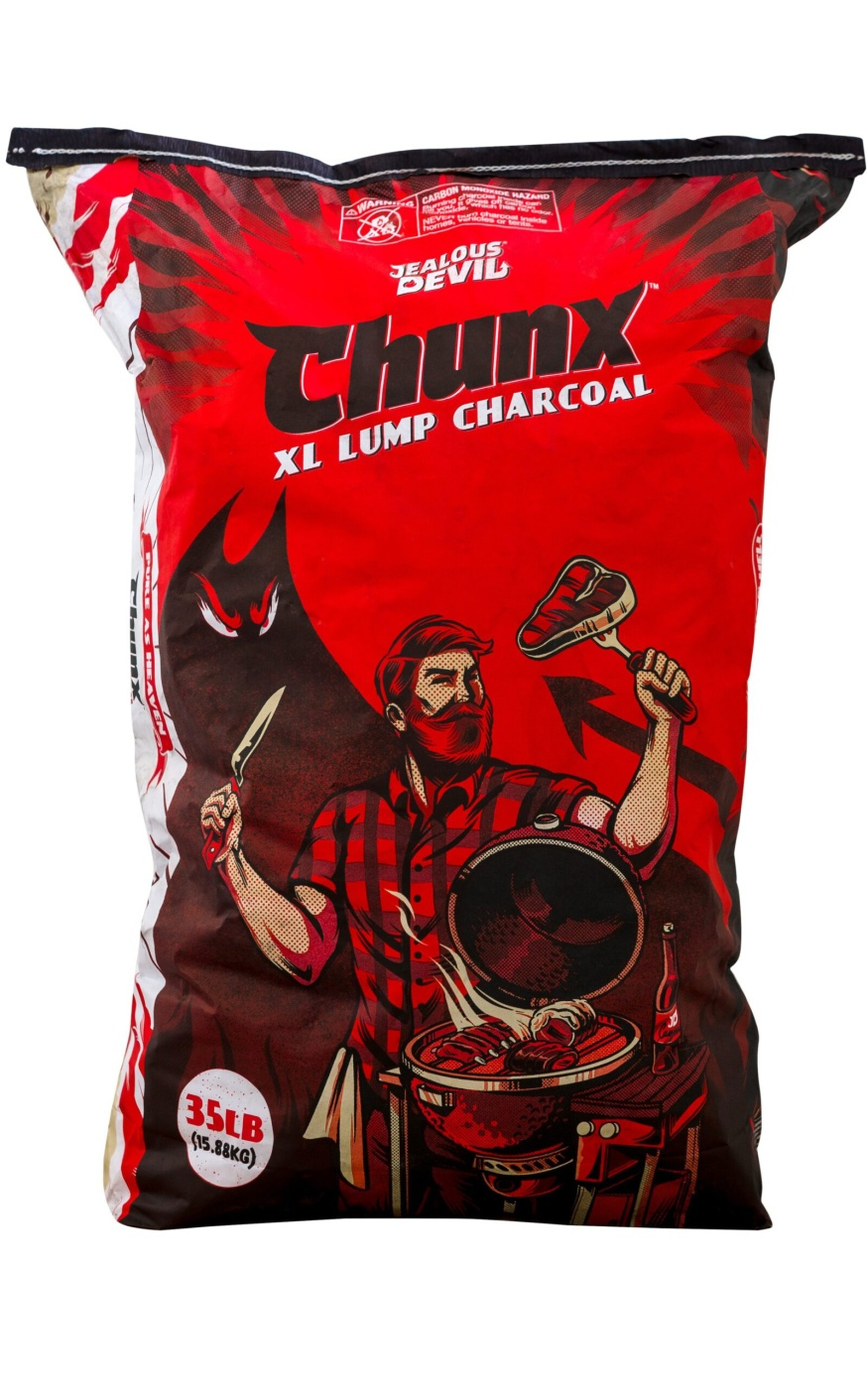 Jealous Devil to bardzo wysokiej jakości i profesjonalny producent węgla drzewnego, który ma Chunx XL jako swój własny charakterystyczny węgiel drzewny. Jest to węgiel drzewny o naprawdę dużych kawałkach, zwany Hardwood Lump Charcoal, który charakteryzuje się niezwykle wysoką jakością. Węgiel jest wykonany ze zwartego drewna, co nadaje kawałkom węgla wysoką gęstość, a w procesie zwęglania szczególną uwagę przywiązuje się do utrzymania węgla drzewnego w jak największej czystości. Rezultatem jest kompaktowy węgiel drzewny o fantastycznym czasie spalania i niesamowitej mocy cieplnej. Ponadto uzyskuje się czystszy smak i aromat bez goryczy. Niezależnie od tego, czy chodzi o grillowanie warzyw, mięsa czy ryb, szybkie i gorące lub powolne wędzenie, wydajność, ciepło, smak i czas spalania będą całkowicie lepsze.