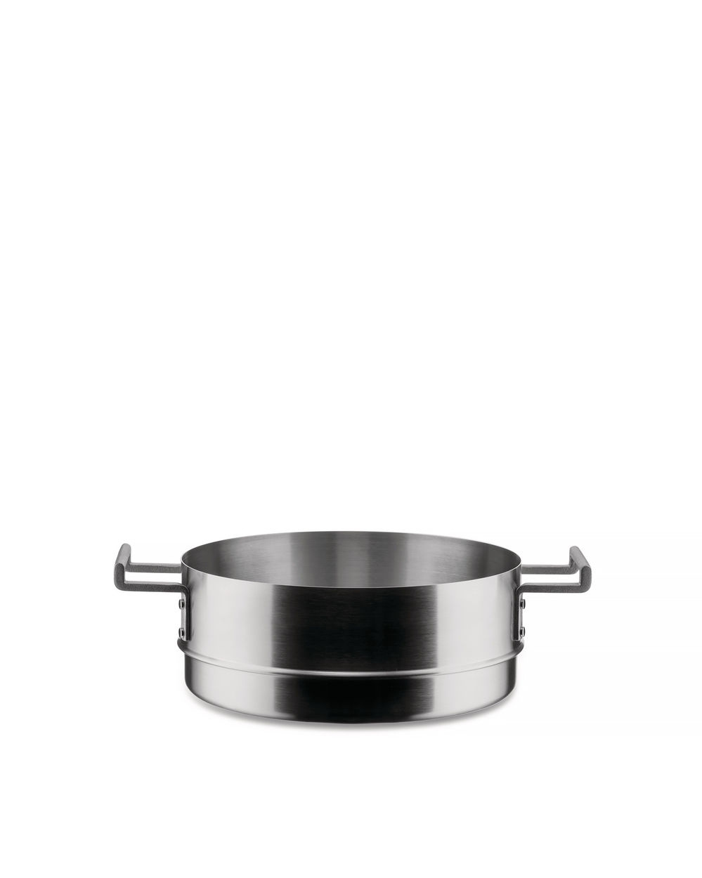 Wkład do gotowania na parze ze stali nierdzewnej, który idealnie pasuje do garnków 24 cm z serii Convivio marki Alessi. Dla tych, którzy chcą gotować na parze warzywa, pierogi lub ryby, nie robiąc tego w jakiejś wypaczonej wkładce, o której nawet nie pamiętasz, po kim została odziedziczona. Tutaj otrzymujesz narzędzie, które wydaje się dobrze przemyślane, dobrze wyważone i całkowicie zgodne z pozostałym językiem projektowania serii Convivio. Uchwyty ułatwiają podnoszenie i wyjmowanie, a błyszcząca stalowa powierzchnia jest zarówno trwała, jak i łatwa do utrzymania w czystości. Prosty szczegół, który robi dużą różnicę - zwłaszcza jeśli lubisz gotować z precyzją.