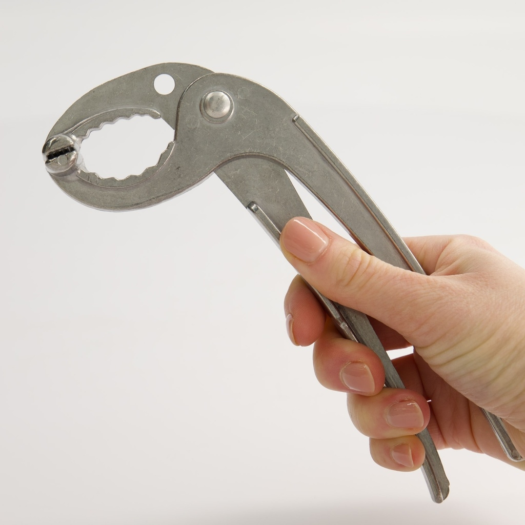 Kształt szczypiec został specjalnie zaprojektowany do grubościennych kamionkowych misek używanych do bibimbap, ale sprawdza się również w przypadku małych żeliwnych garnków i innych gorących naczyń. Uchwyt jest ustawiony pod kątem, aby trzymać dłoń z dala od gorąca, zapewniając jednocześnie dobrą kontrolę podczas serwowania.
