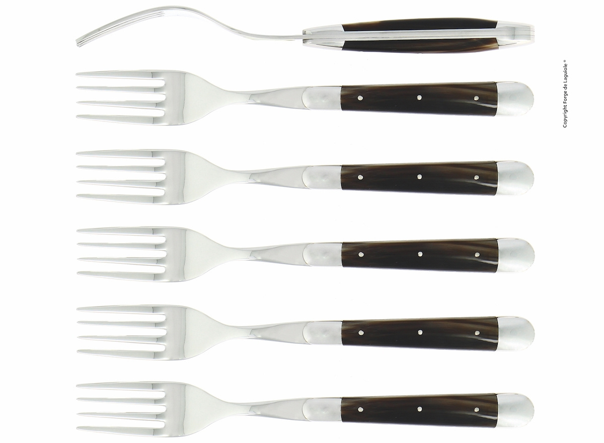Sześć widelców, rękojeść z ciemnego rogu, polerowana, Tradition - Forge de Laguiole