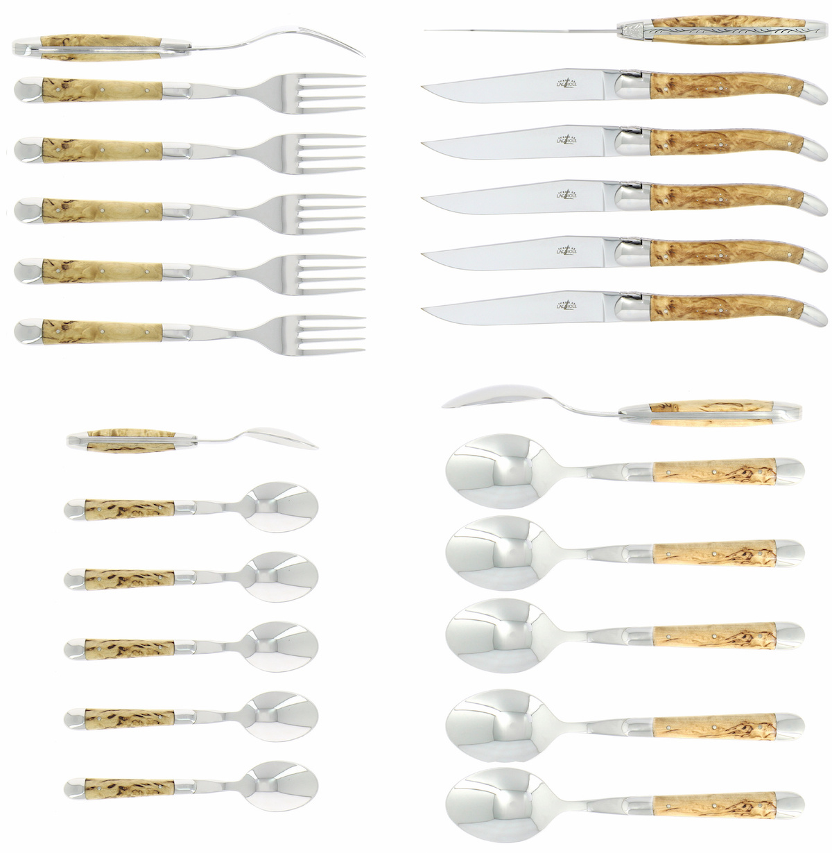 Zestaw sztućców 03, rękojeści brzozowe, polerowane, Tradition - Forge de Laguiole